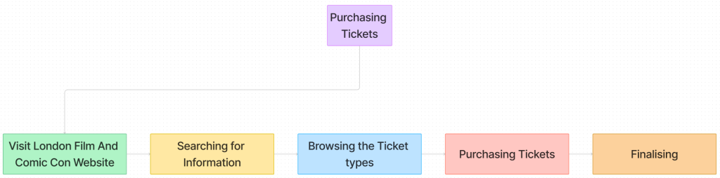 The top HTA is a simplified version of how the website shall flow, how everything is linked to each other as the navigation bar is always at the top therefore always accessible for the users to change page from anywhere on the website they are not having to go back to the home page every single time. This is so the stakeholders can view how it works and just how simple it will be. However, the last two HTA’s are a more in depth detail to how it will flow if the users want to purchase a ticket or log in/ sign up.