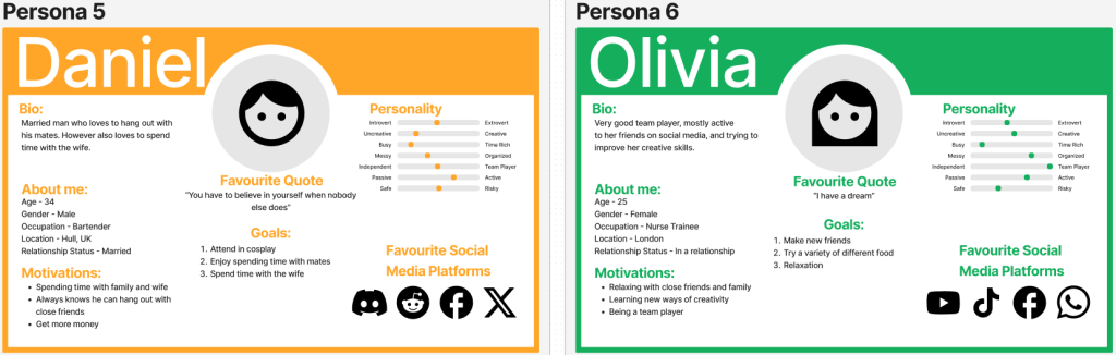 To source secondary feedback I created posts on Reddit for users to answer, if wanted to, about their experience at MCM Comic Con or what they want to do if they have never been before. This feedback gave me a chance to construct 6 personas. These personas feedback allows the design of the festival/ website/ app to all be created correctly to meet the users needs and wants.