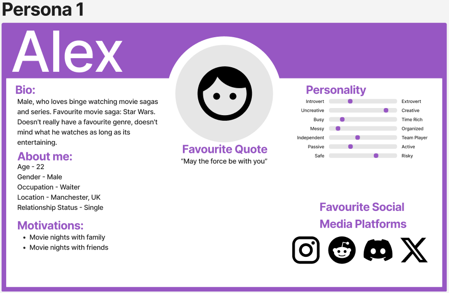 My target audience for Star Studios expands out to a wide range of age groups. The main audience consists of young teenagers to young adults aged 13 to 30. To gather research of needs and wants I shall create personas, asking the users questions what they may expect on a app and what they may want to avoid.