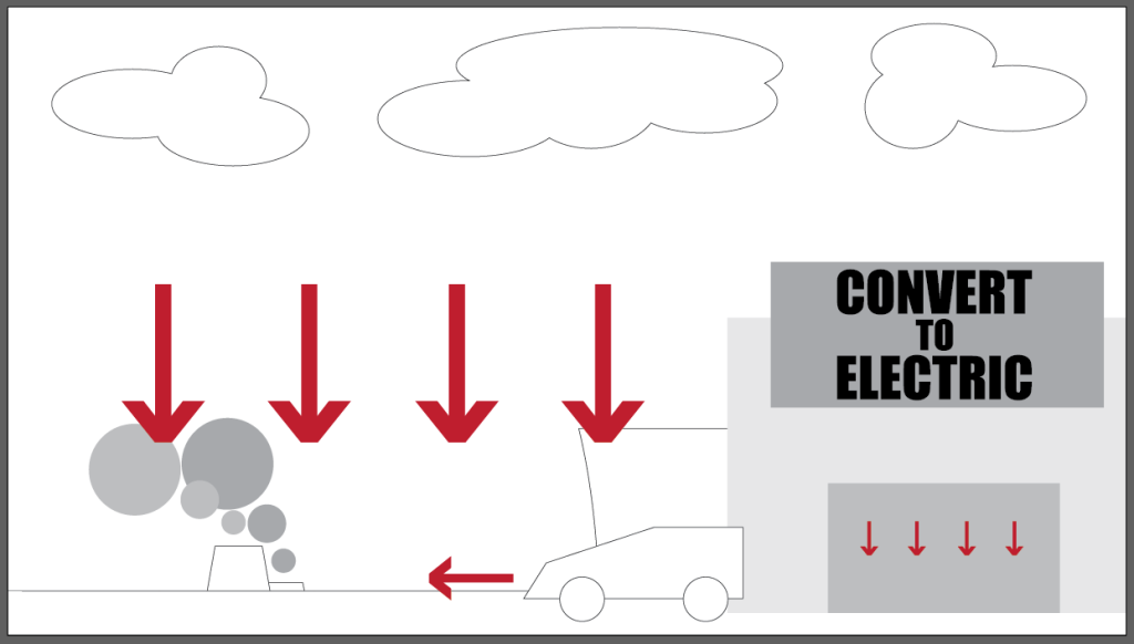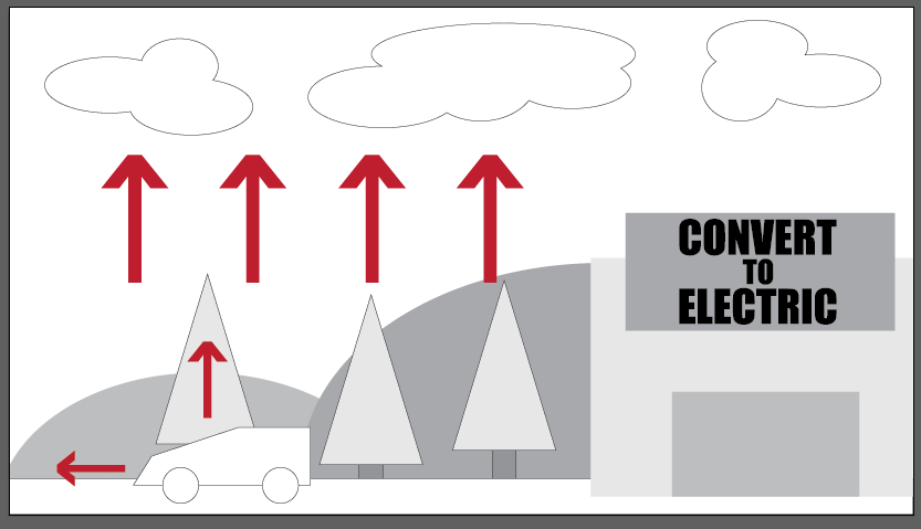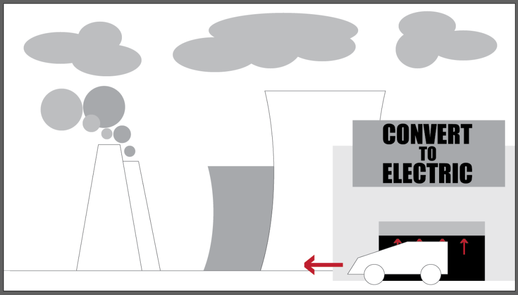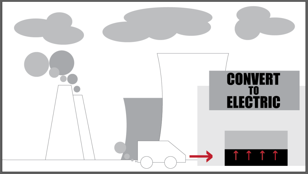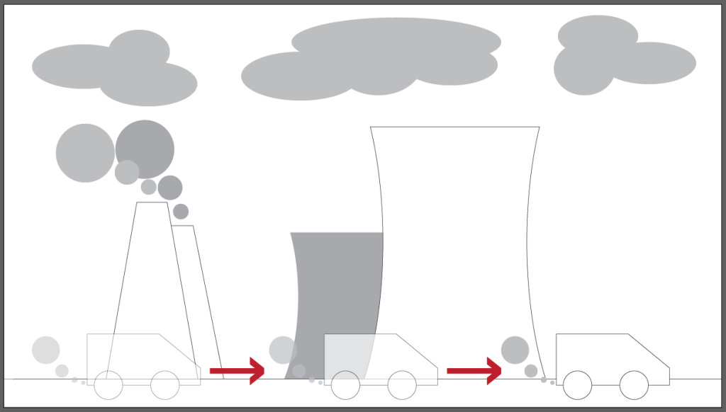 Scene one is the beginning of the animation, setting the stage with a simple visual. The focal point in this scene is the fuel-powered car. This car drives across the screen, moving from left to right. The setting I’m going to create is a deliberate choice, representing the negative impact of using fuel-powered vehicles. The dark and dismal environment serves as a visual metaphor for pollution and environmental damage. The cooling towers and smoke further emphasize the consequences of our current energy choices. The car’s journey across the landscape is going to be my “before” picture, illustrating the world’s condition if we continue down the same path. As later one the benefits of electric cars will be showcased. The contrast between this scene and the end scene will highlight the potential for a cleaner, more sustainable future.
