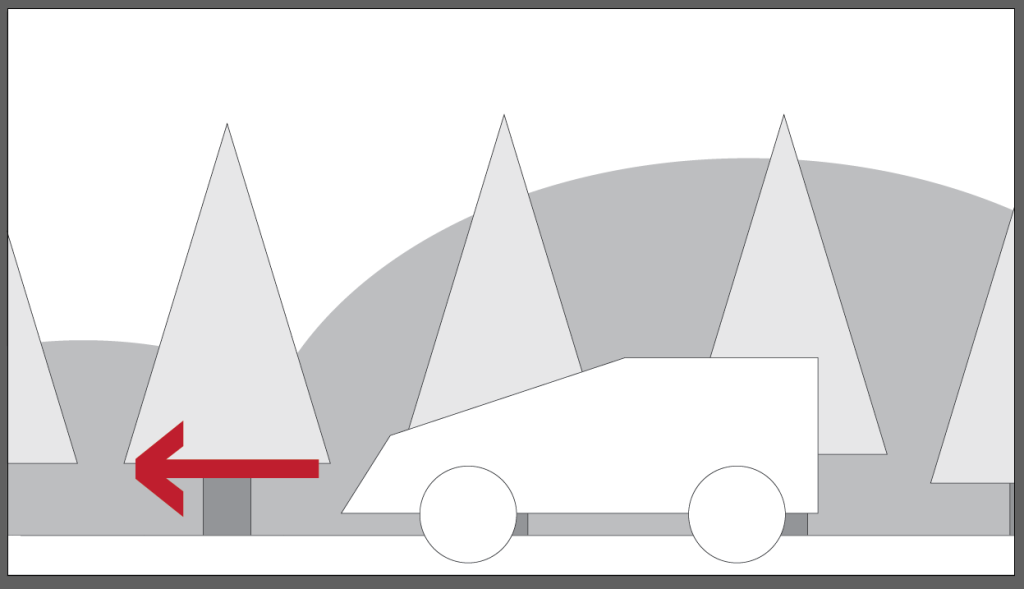 Scene two transitions from the initial wide shot to a close-up of the fuel-powered car, immediately changing the viewer’s focus. In contrast to the first scene, where the car moved across a static background, scene two employs a dynamic background that moves from right to left. This technique is designed to create the illusion of movement, even though the car itself remains still within the frame. To further enhance the illusion of movement, I’m going to add a subtle shake animation to the car. I am doing this to simulate the experience of a vehicle struggling to drive.