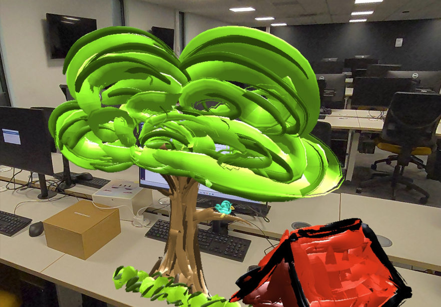 My final piece of artwork I created using the VR headset was slightly bigger than the last. Even though on OpenBrush you have the tool to scale your artwork, I wanted to get in the groove of designing something bigger as for my final outcome I might. I started with creating a tree, trying to give it as much realism as I could but also stay within the cartoon-like colours. Once I had that drawn I wanted to make it more of a three dimensional scene so I added more of a landscape by painting a tent to the side of the tree. Once I fully understand the possibilities I have within OpenBrush I feel like it would be a great emerging technologies to use for my final outcome. Especially since vie always enjoyed drawing and would be up for trying something I’m not so use to.