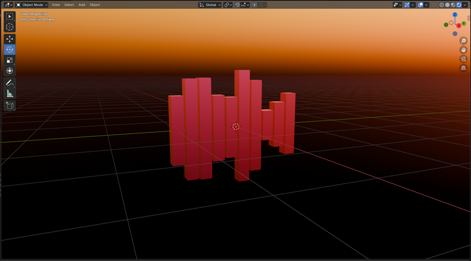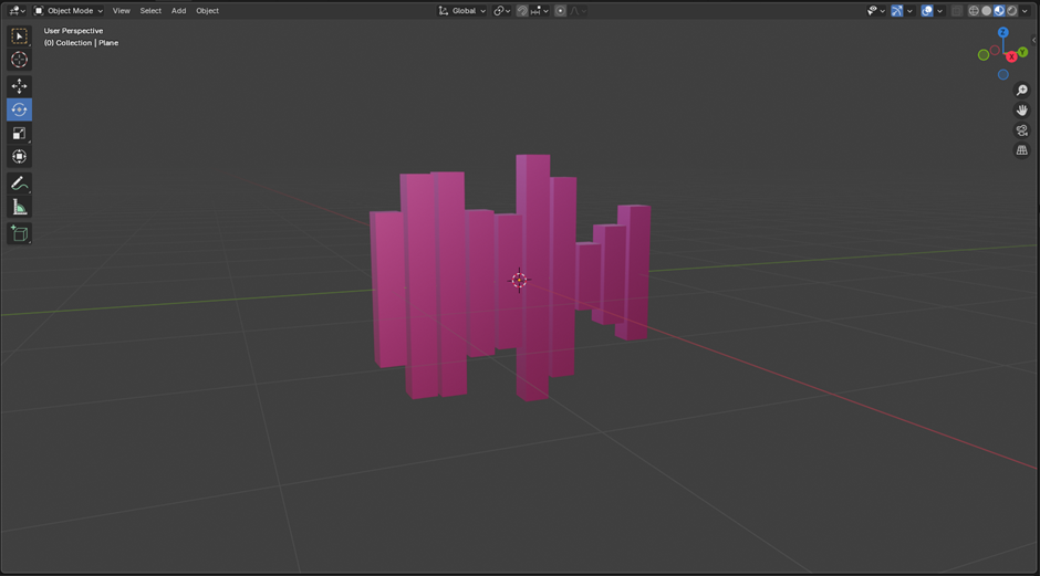 During the same week, I was given the option to create other assets that could be implemented into our 360 video. One of the tasks being the understanding of geometry nodes. Following a tutorial, I was able to re-create a simple music visual, where the blocks you see react to the music played in the background. The tutorial was simple enough to understand, and my final outcome work successfully, with only one technical issue I ran into. However, it was an easy fix as it was just down the version of Blender I was running.
