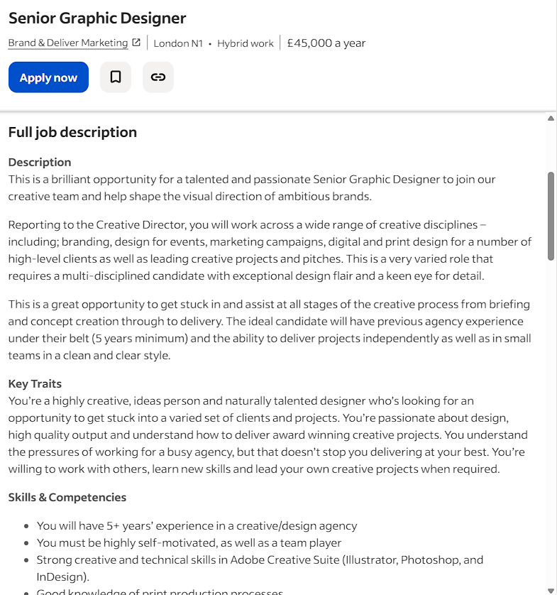 I have begun a bit of research within branding and marketing for graphic design roles on job listing sites. This is what made me realise that this project shall lead me into filling in the gaps to any skills I may have to learn before looking for work.